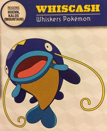Pokemon aficionados might feel safer having a Bayleef or Meganium nearby to counter the attacks of Whiscash or, in Japanese, Namazun ナマズン. Whiscash is a water, ground Pokemon derived from the mythology of the catfish Namazu. Whiscash causes earthquakes and can also predict when natural earthquakes will occur. Bayleef and Maganium are grass Pokemon capable of defeating Whiscash.