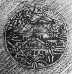 Speaking of Osaka, here’s a drawing I did of a cover featuring Osaka Castle (大阪城 or Osaka-jō), made to look like it’s a rubbing of a real cover. This link to the Society of Manhole Covers takes you directly to images of the real cover in full color.